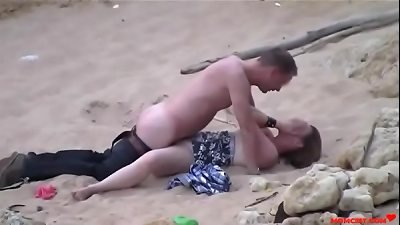 两名女同性恋女孩在海滩上玩耍时被一名游客抓住,她们的屁股被打碎了