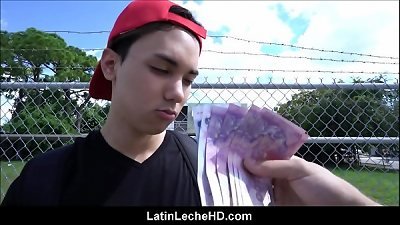 没有经验的维珍拉丁裔在红色棒球帽上赋予了他在街头的角度遇到的犁陌生人