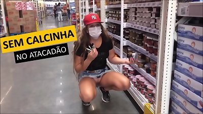 凯伦齐娜 (Kellenzinha) 与丈夫在旁边在批发商展示 — 在公共场所暴露狂 — 红色