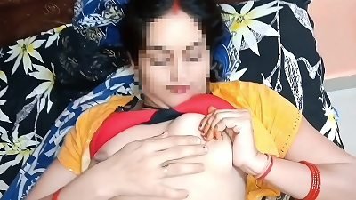 印度热气腾腾的女士janvibhabhi独自一人在她的卧室并邀请她的男朋友来修水管