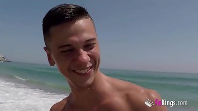 韩国少年Hina Maeda提供口头工作,并在海滩上获得户外铁杆狂欢